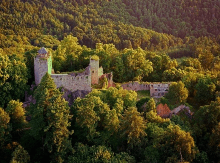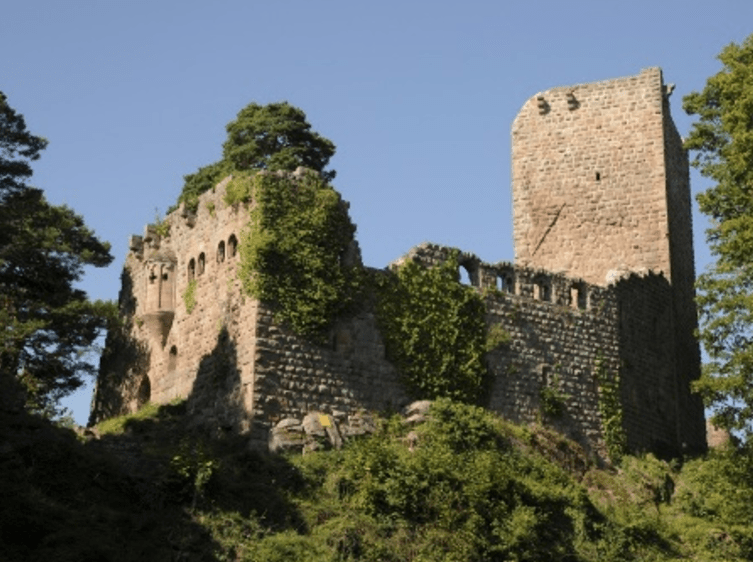 Château construit vers 1246 pour Alexandre de Dicka, avoué de l’abbaye d’Andlau. Donjon carré et logis protégés par un imposant mur-bouclier. Vestiges de peintures murales dans les fenêtres. Basse-cour abritant des bâtiments du XVIe s. Animations d’été à certaines dates. A 1h de marche du gite