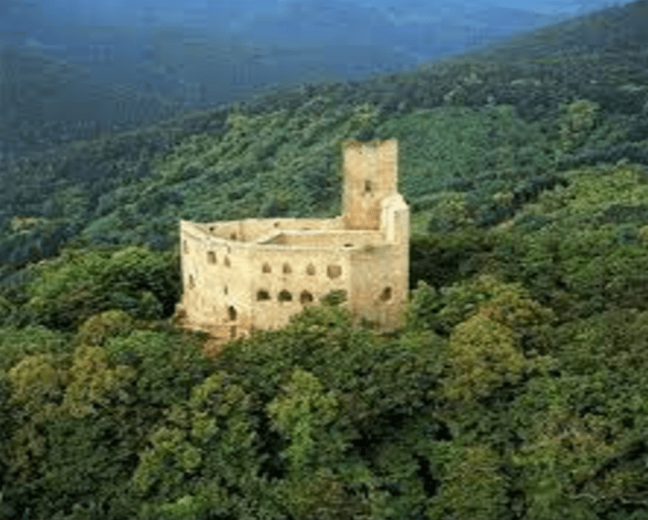 Le château (vers 1200) est composé d’un donjon pentagonal, d’un logis et d’une tour renfermant une chapelle. Présence d’une citerne souterraine en contrebas du château, dans la basse-cour. A Dambach la ville 12km de Andlau